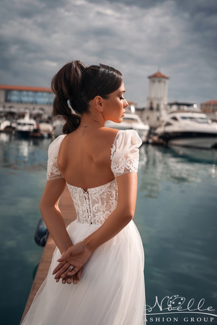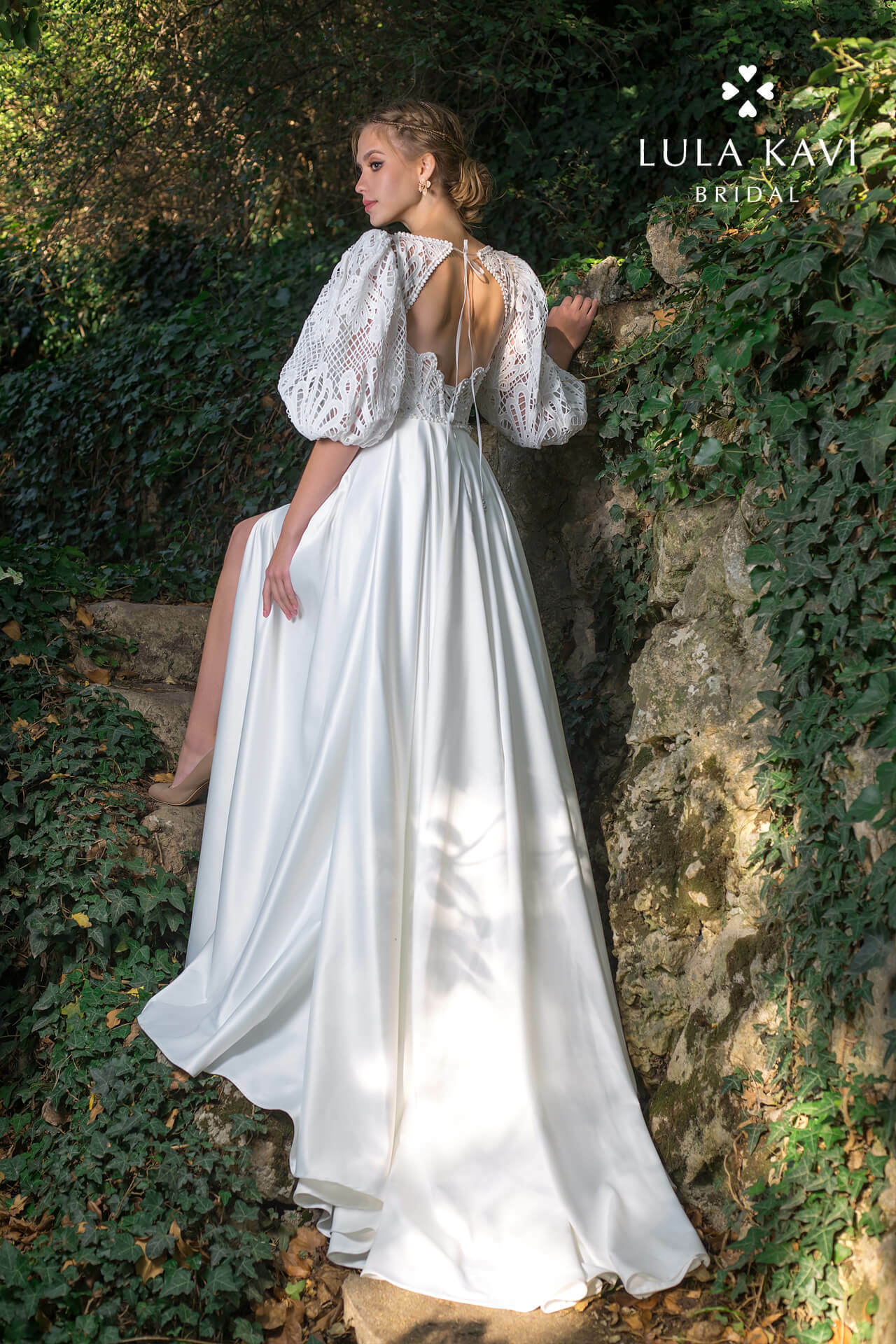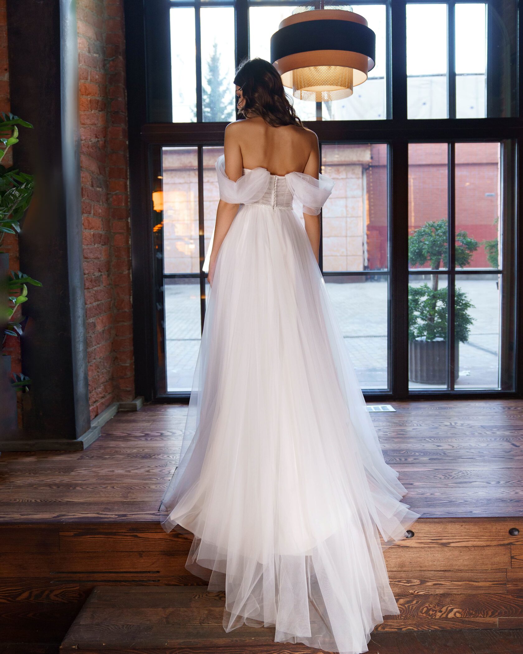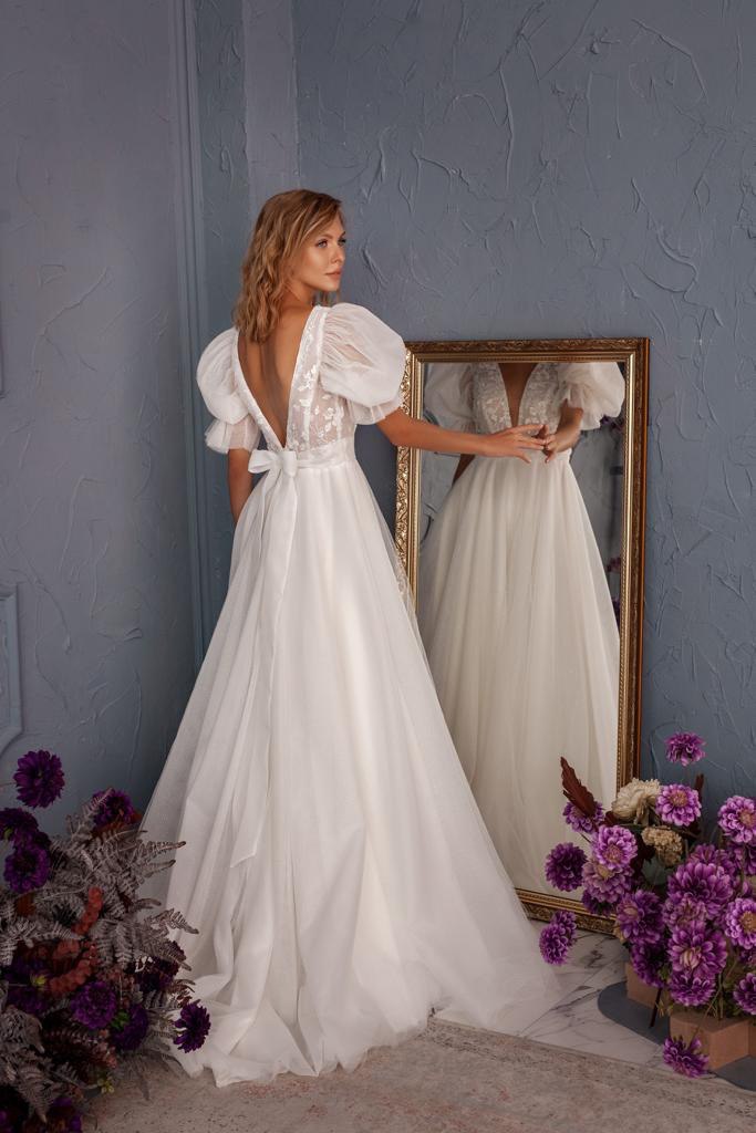 Открытая спинка придаёт женственности образу. Идеальный вариант для свадьбы в стиле Бохо.