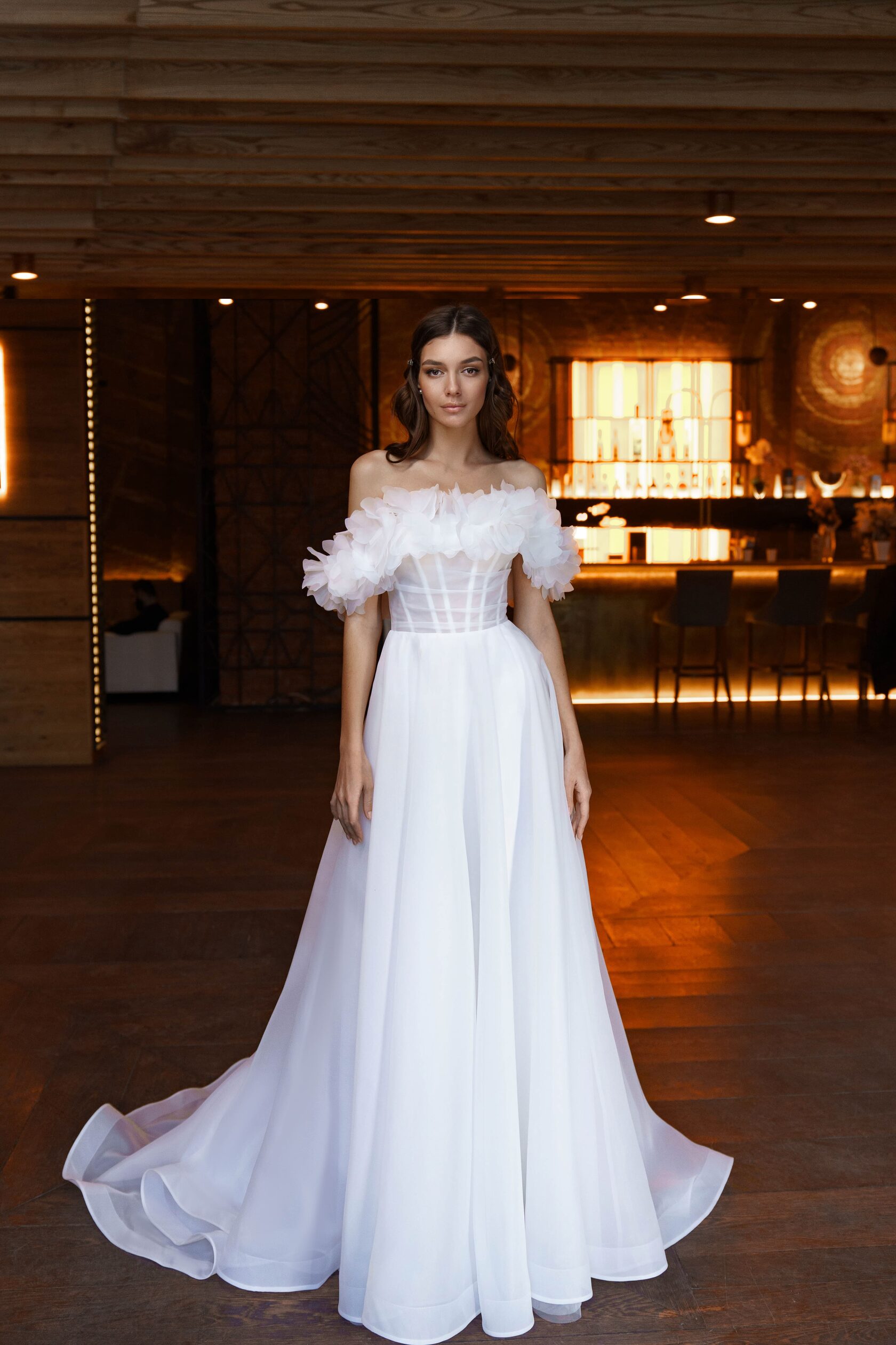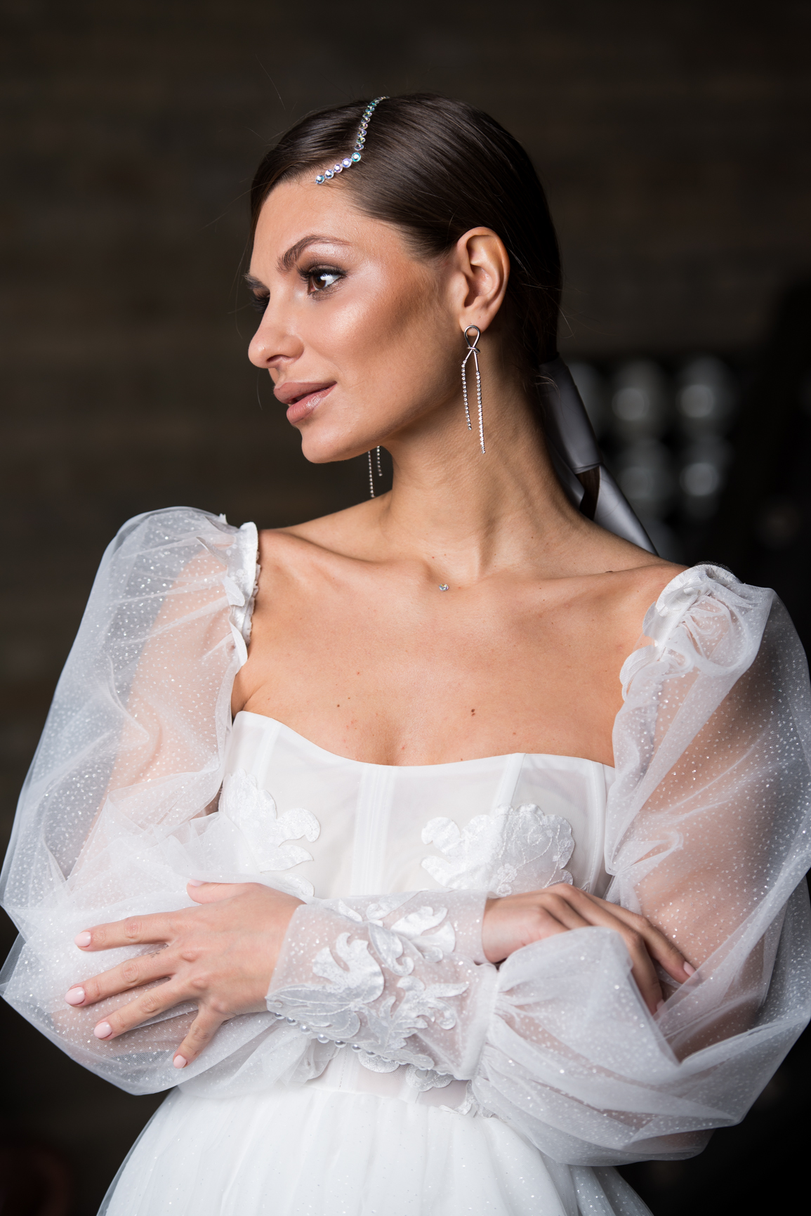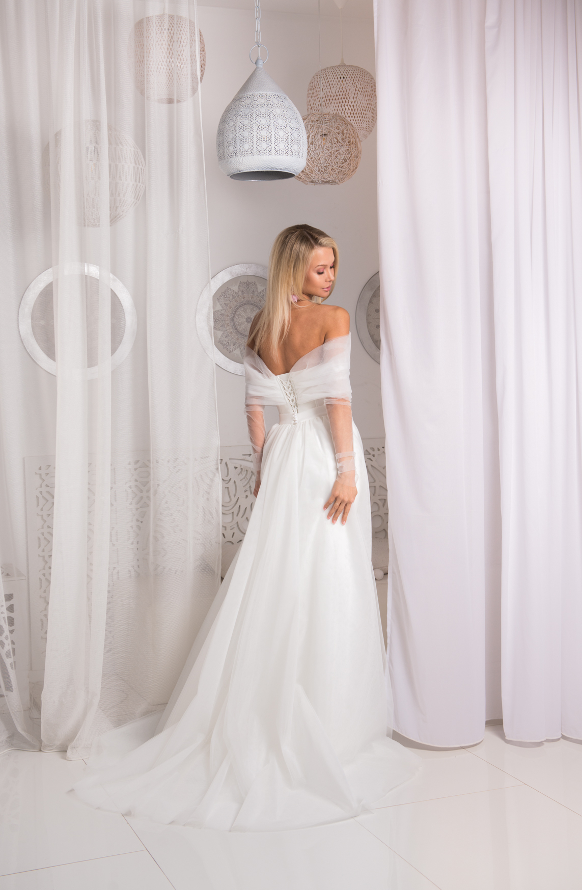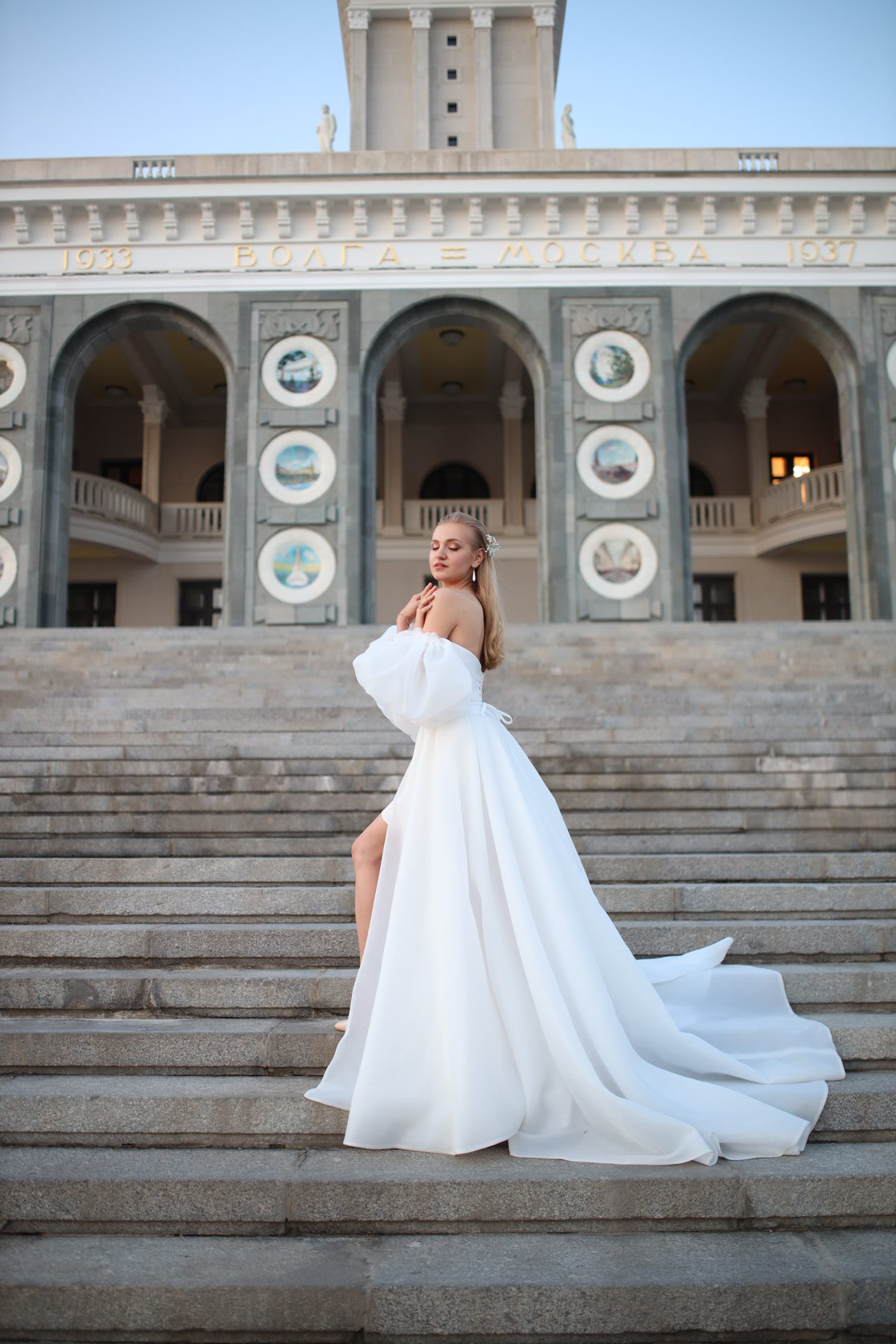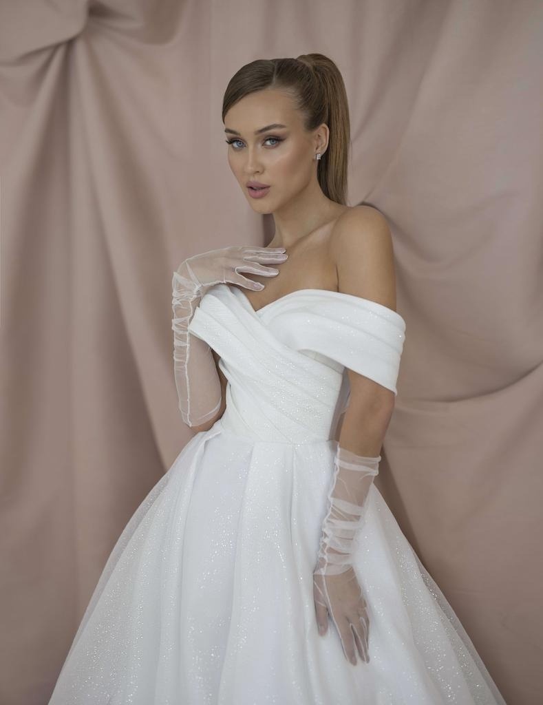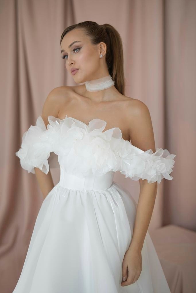 Воздушный и роскошный образ для той, кто безмерно ценит себя. Той, что может позволить себе открытые плечи, ведь у неё безупречная зона декольте