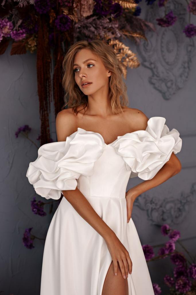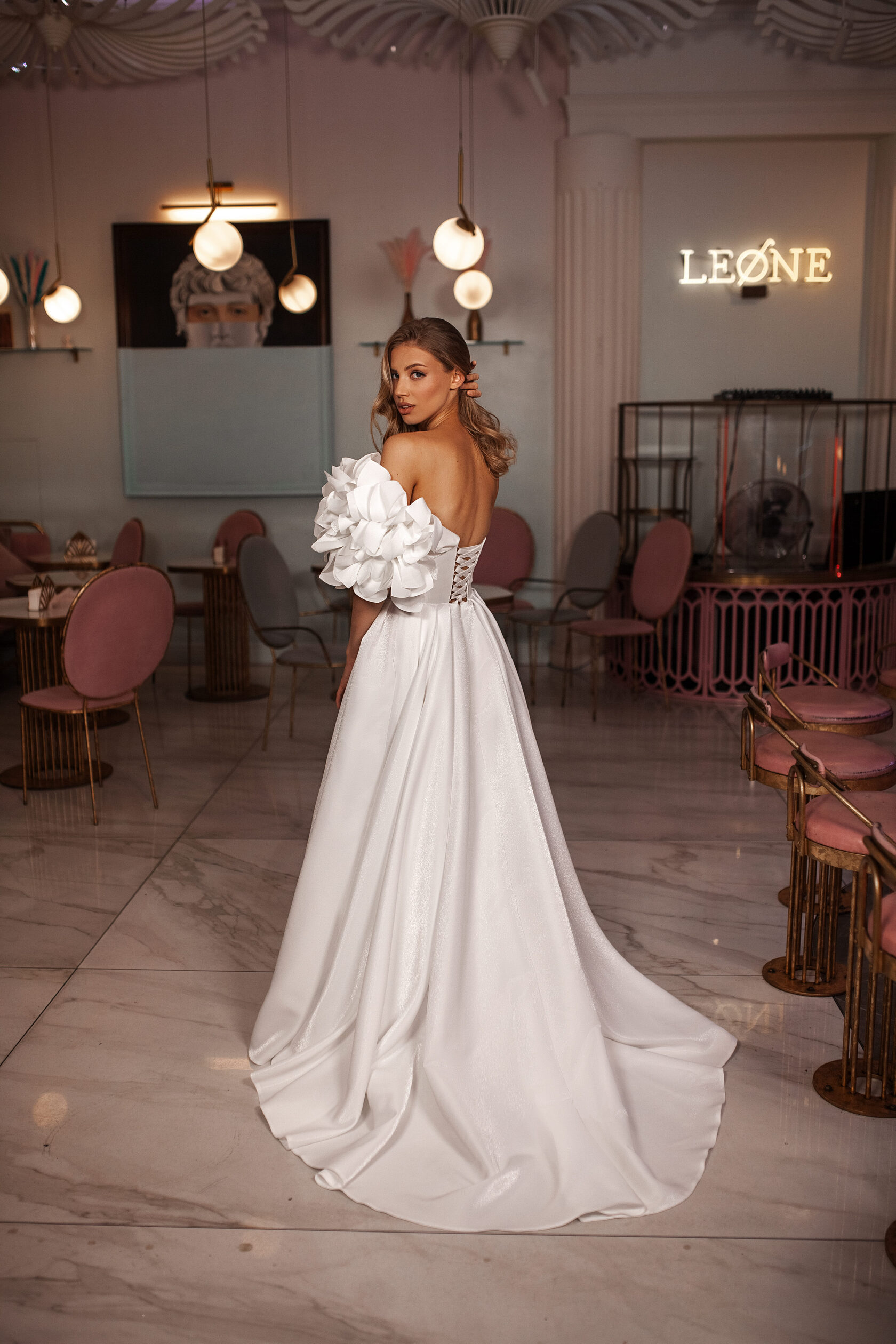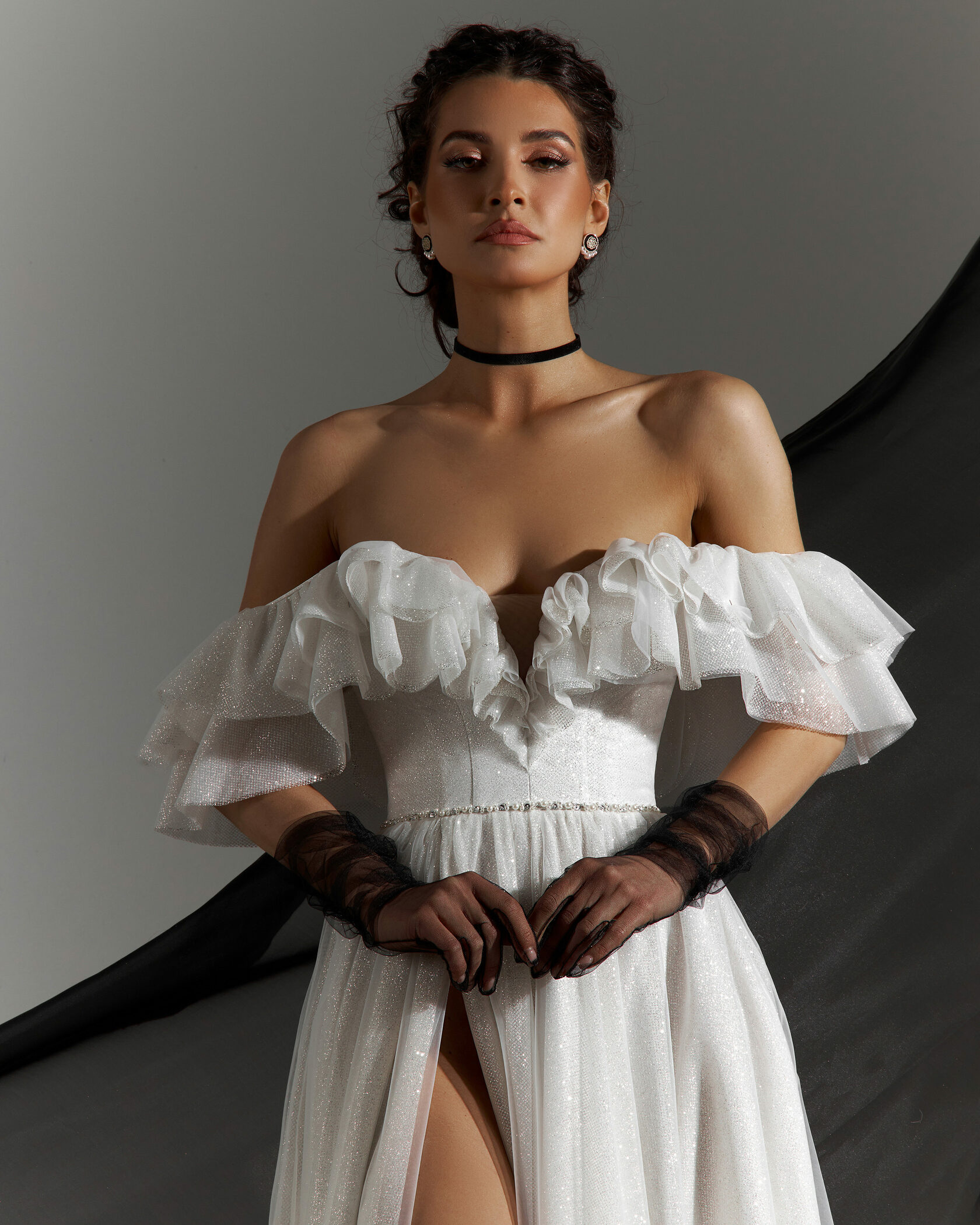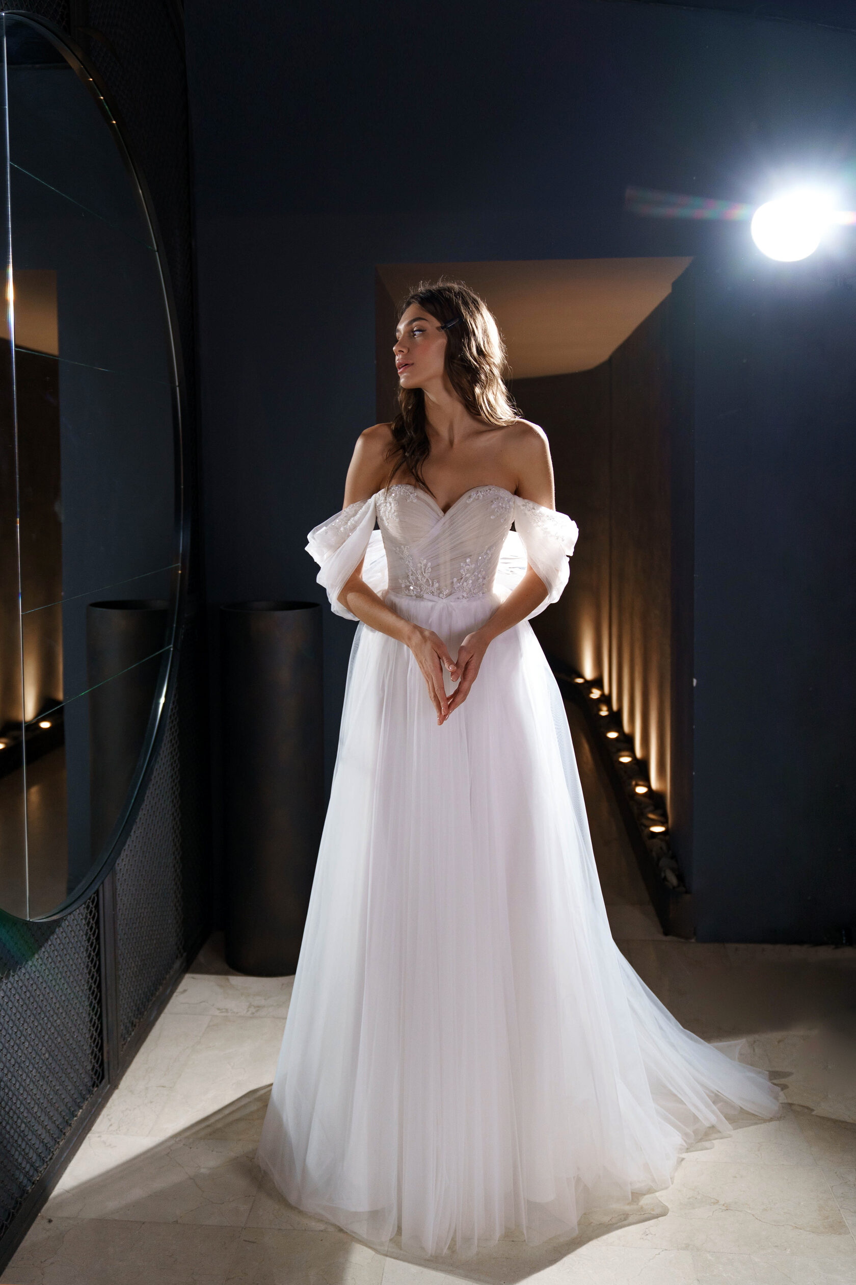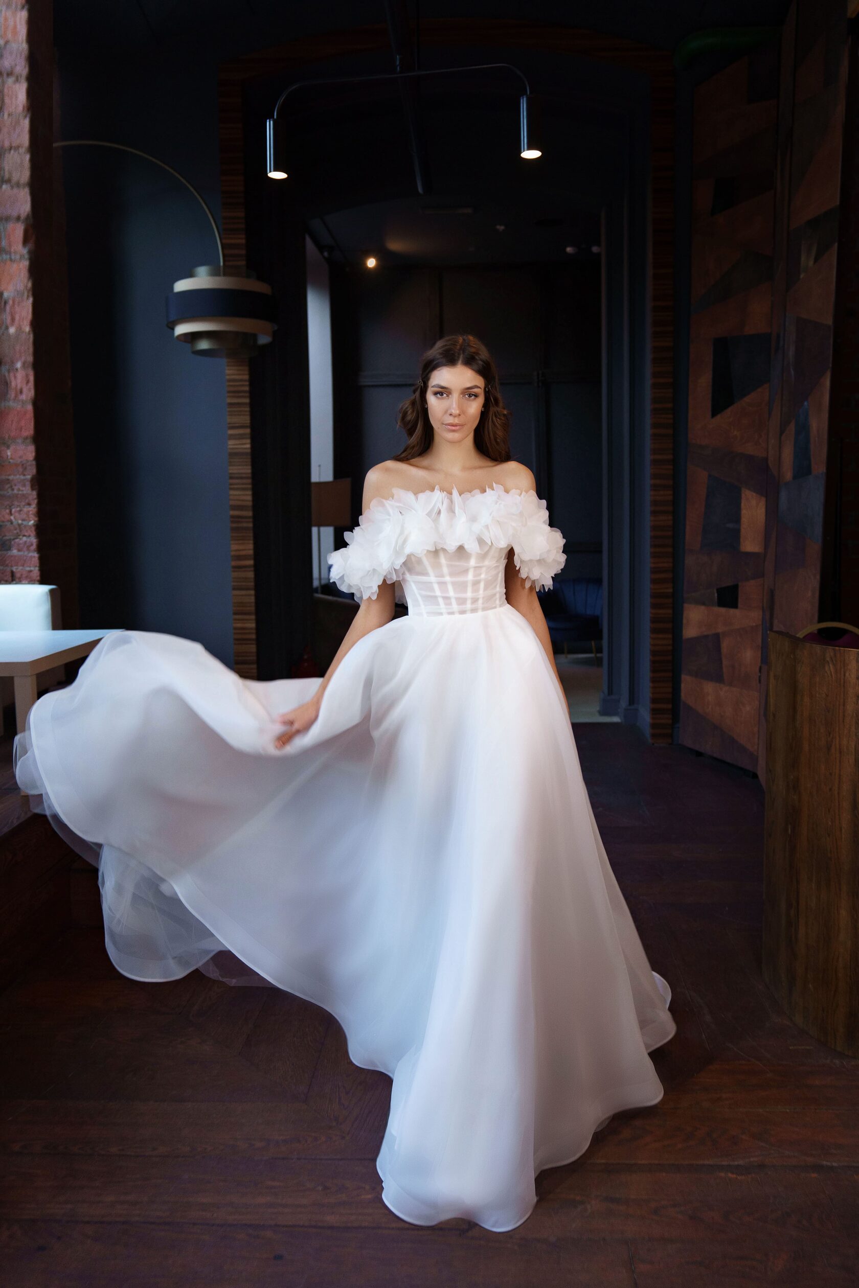 Воздушный и роскошный образ для той, кто безмерно ценит себя. Той, что может позволить себе открытые плечи, ведь у неё безупречная зона декольте