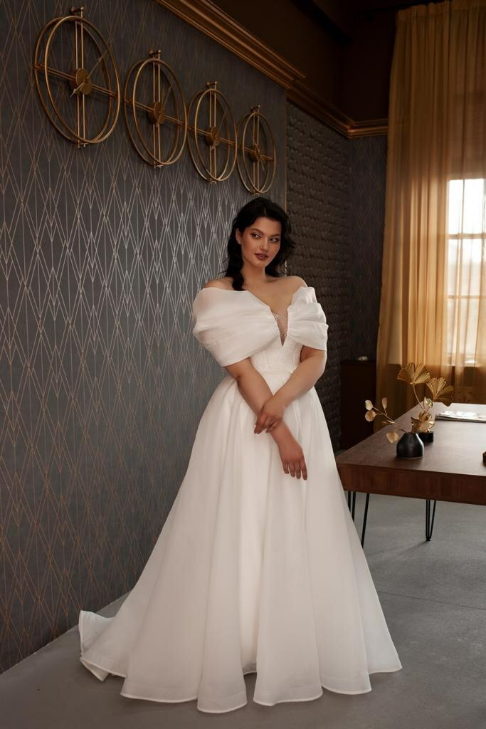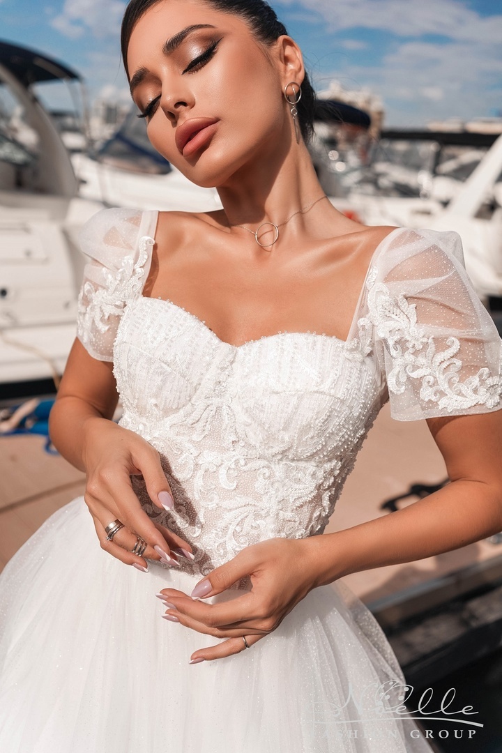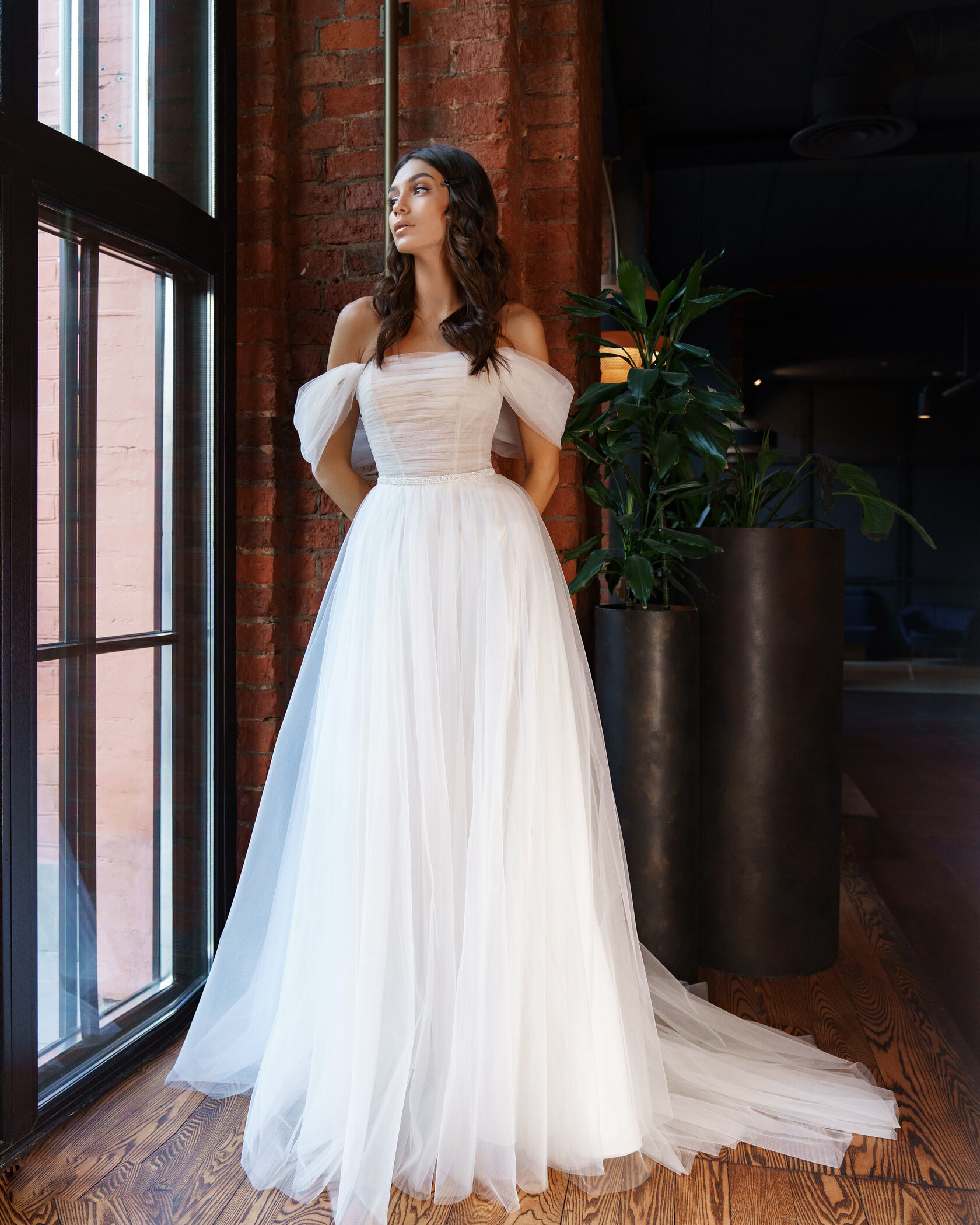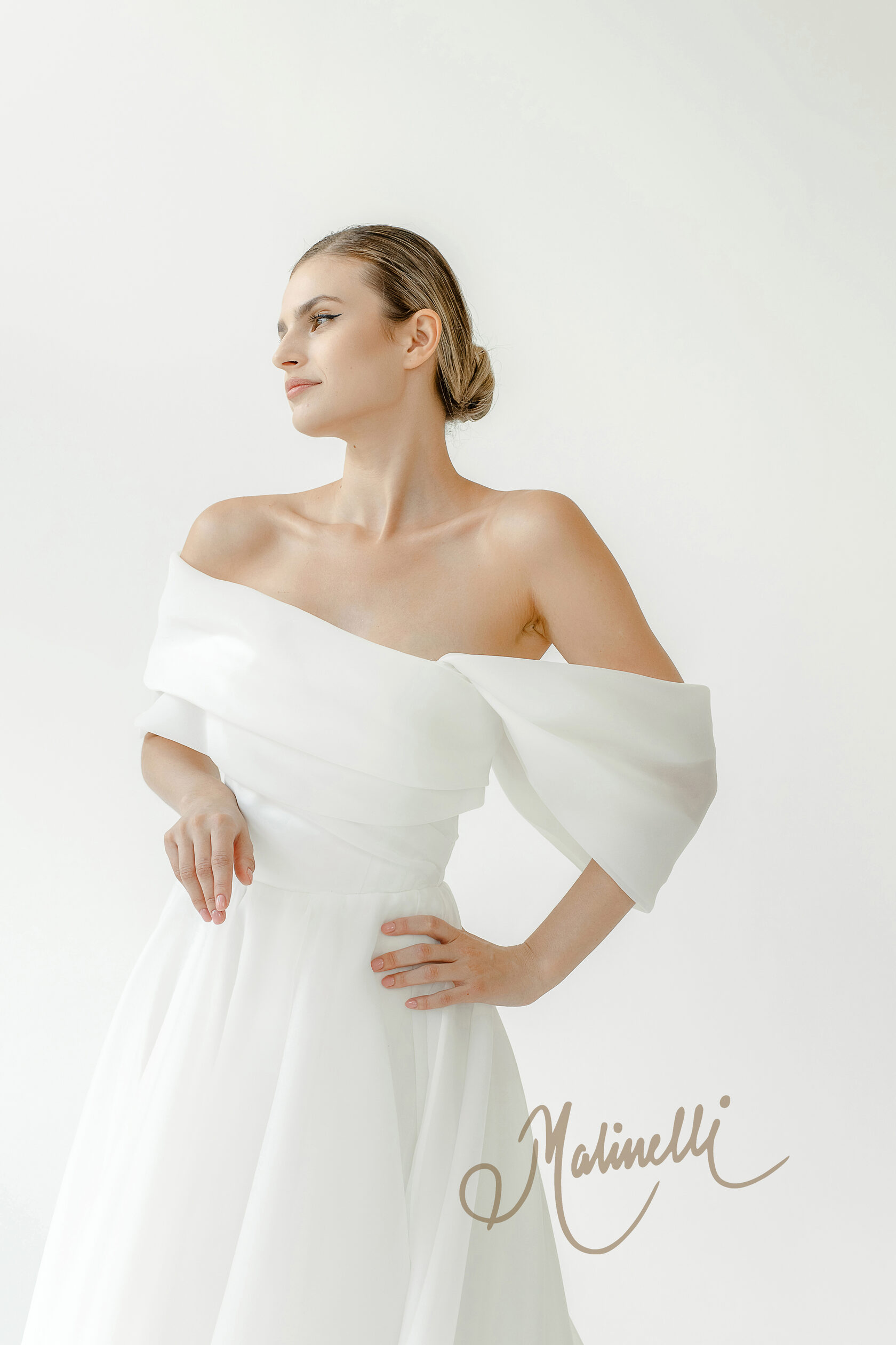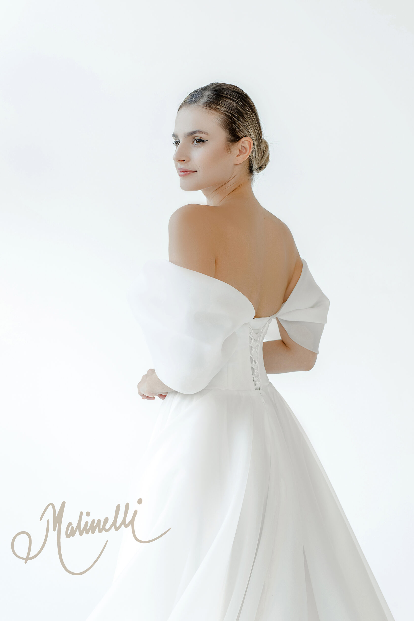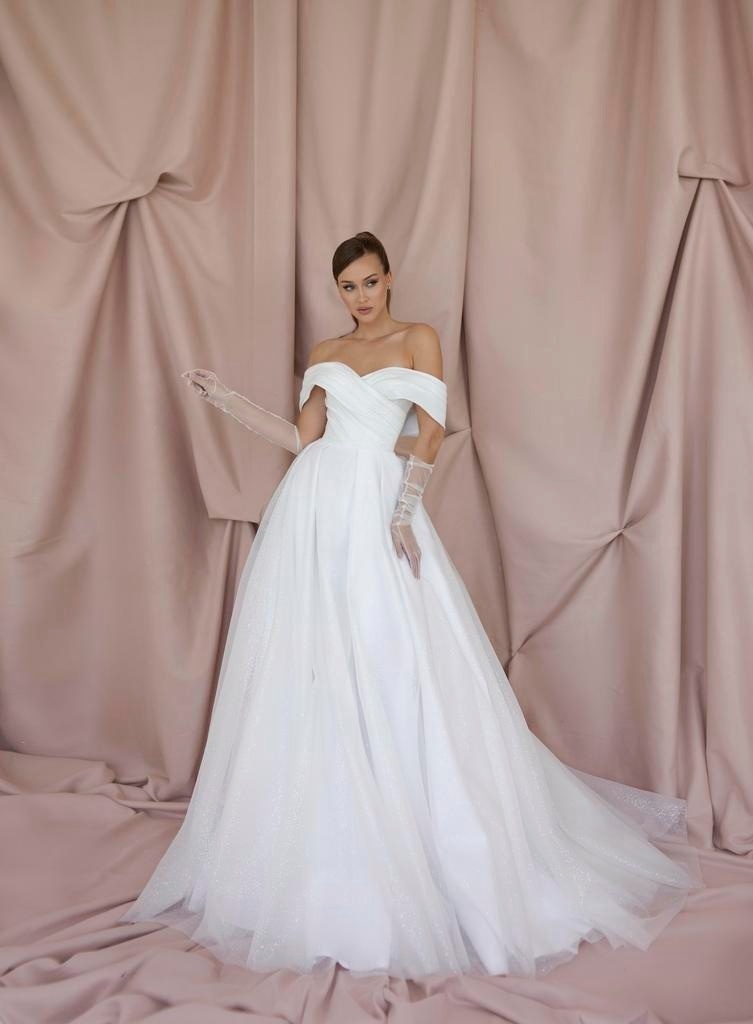 Воздушный и роскошный образ для той, кто безмерно ценит себя. Той, что может позволить себе открытые плечи, ведь у неё безупречная зона декольте