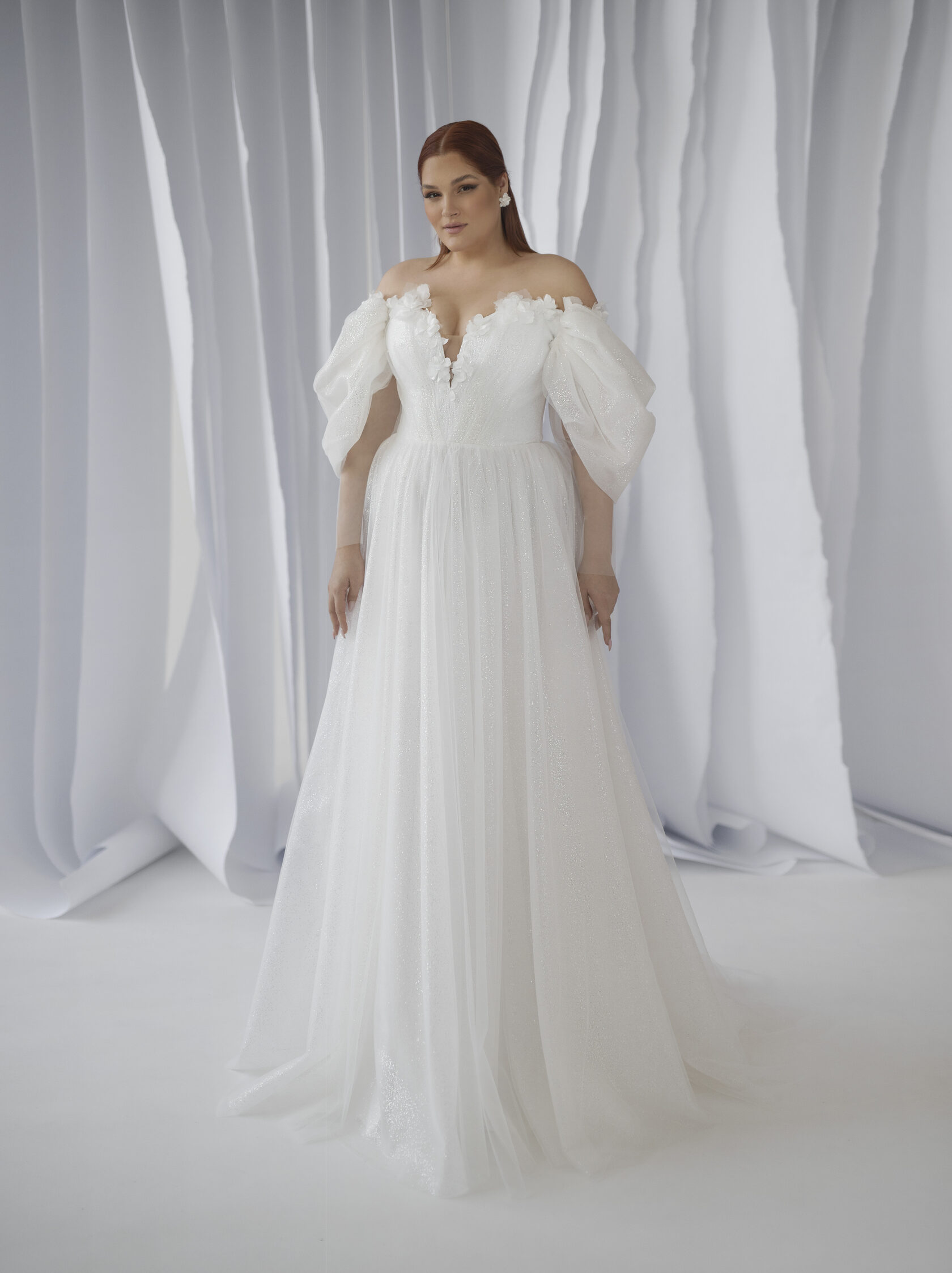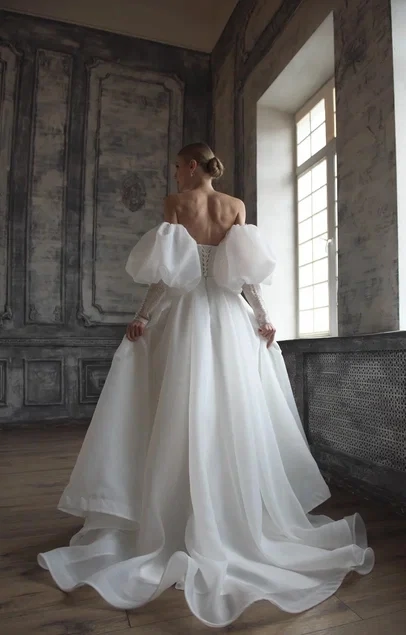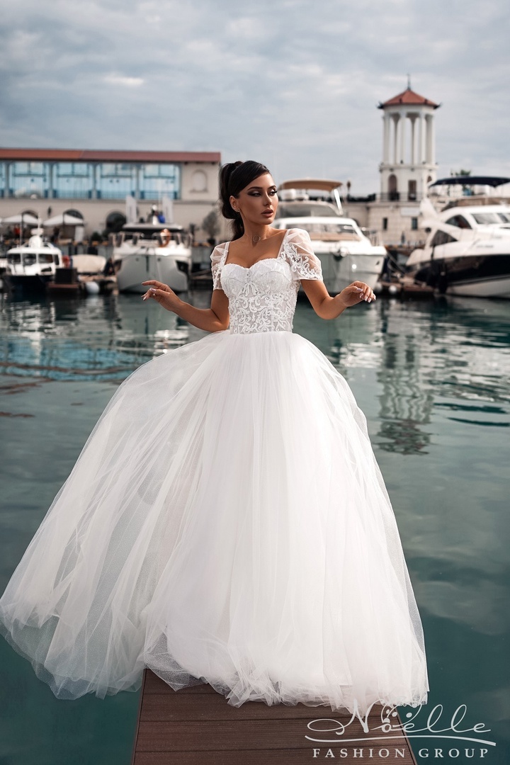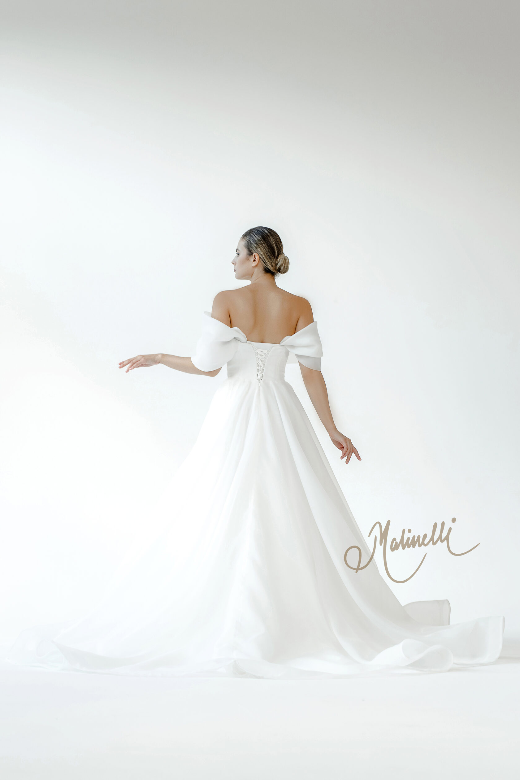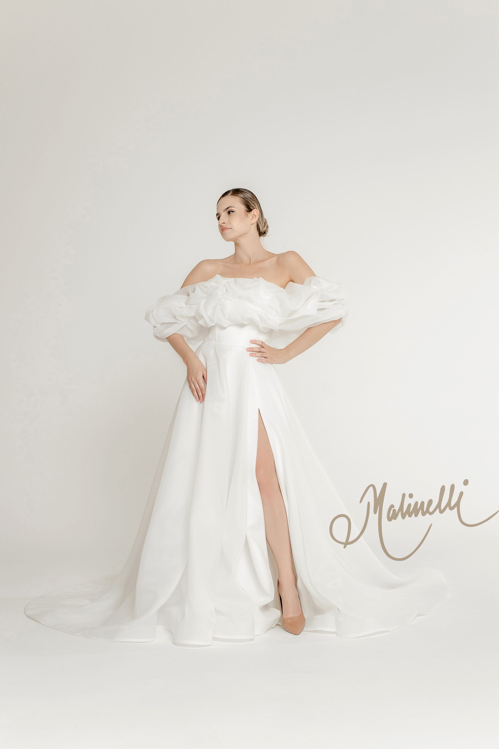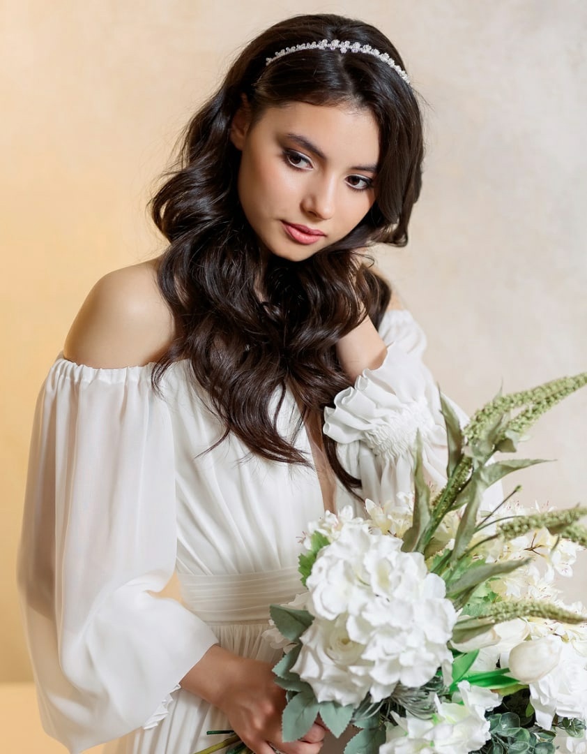 Воздушный и роскошный образ для той, кто безмерно ценит себя. Той, что может позволить себе открытые плечи, ведь у неё безупречная зона декольте