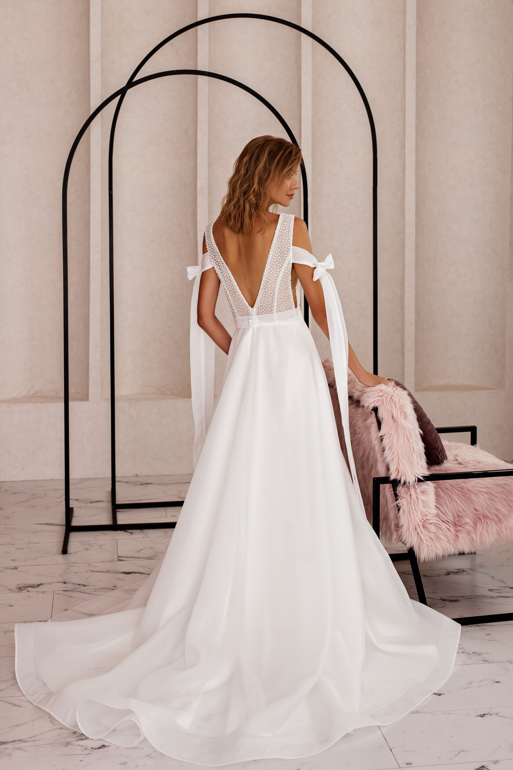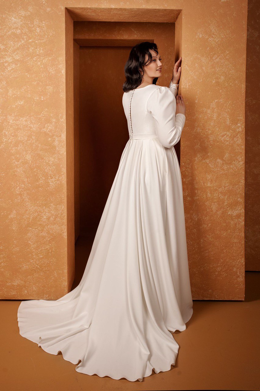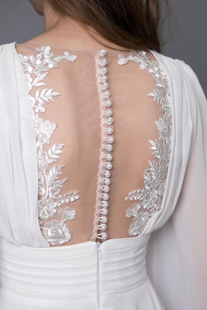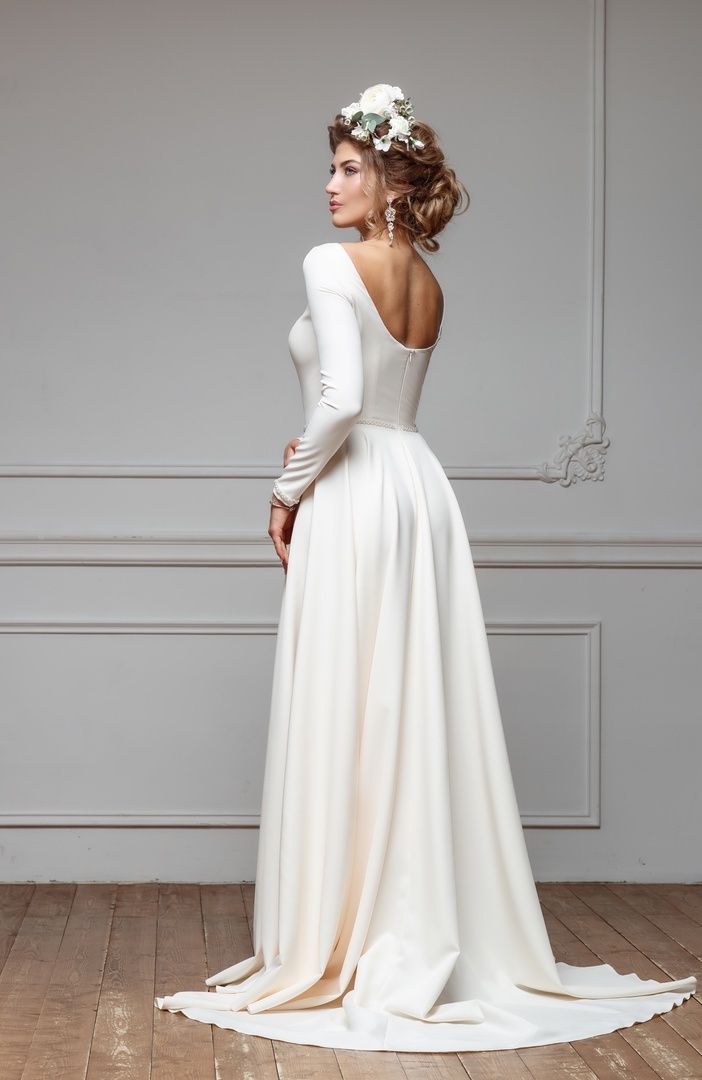 С одной стороны, никаких вырезов и декольте. Всё более чем прилично! Даже ваша бабушка на свадьбе оценит ваш выбор.