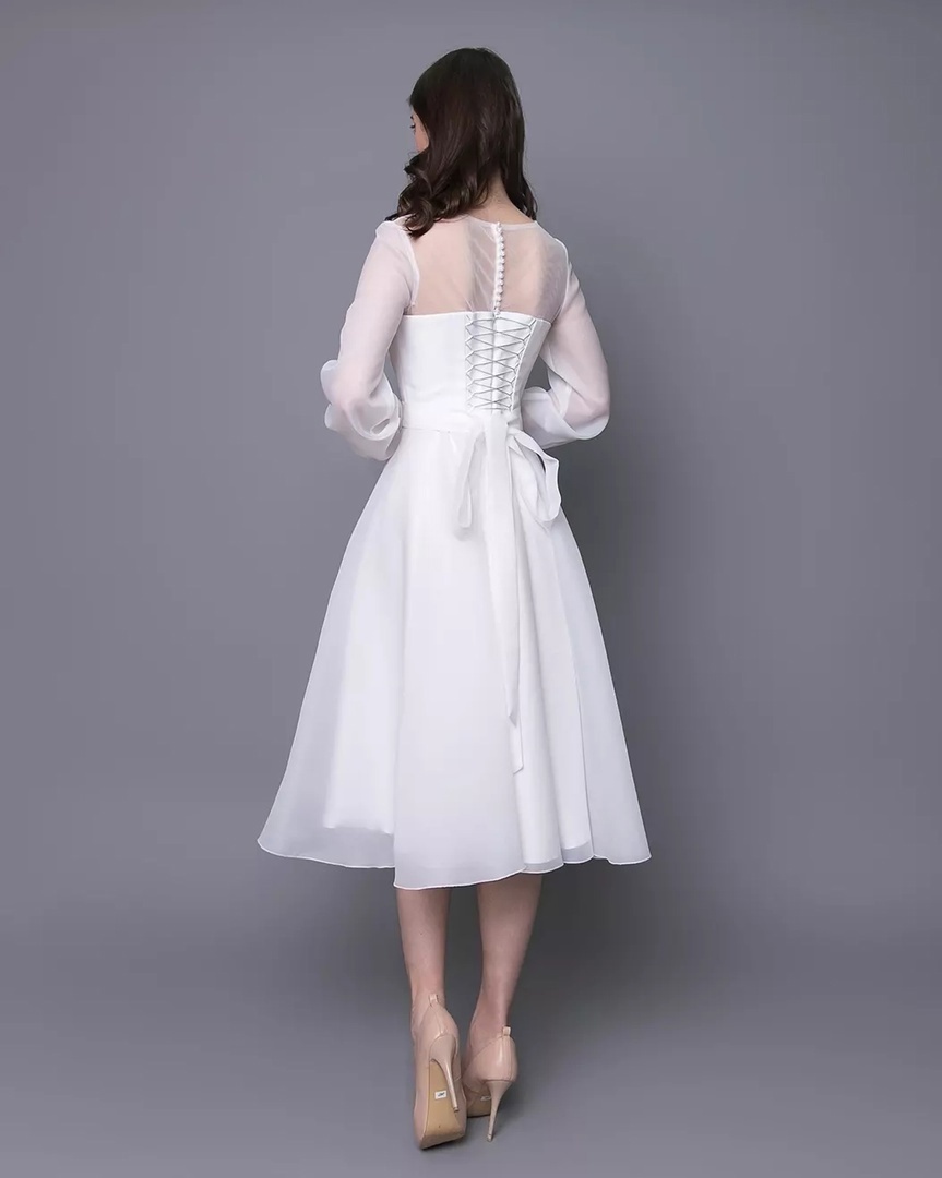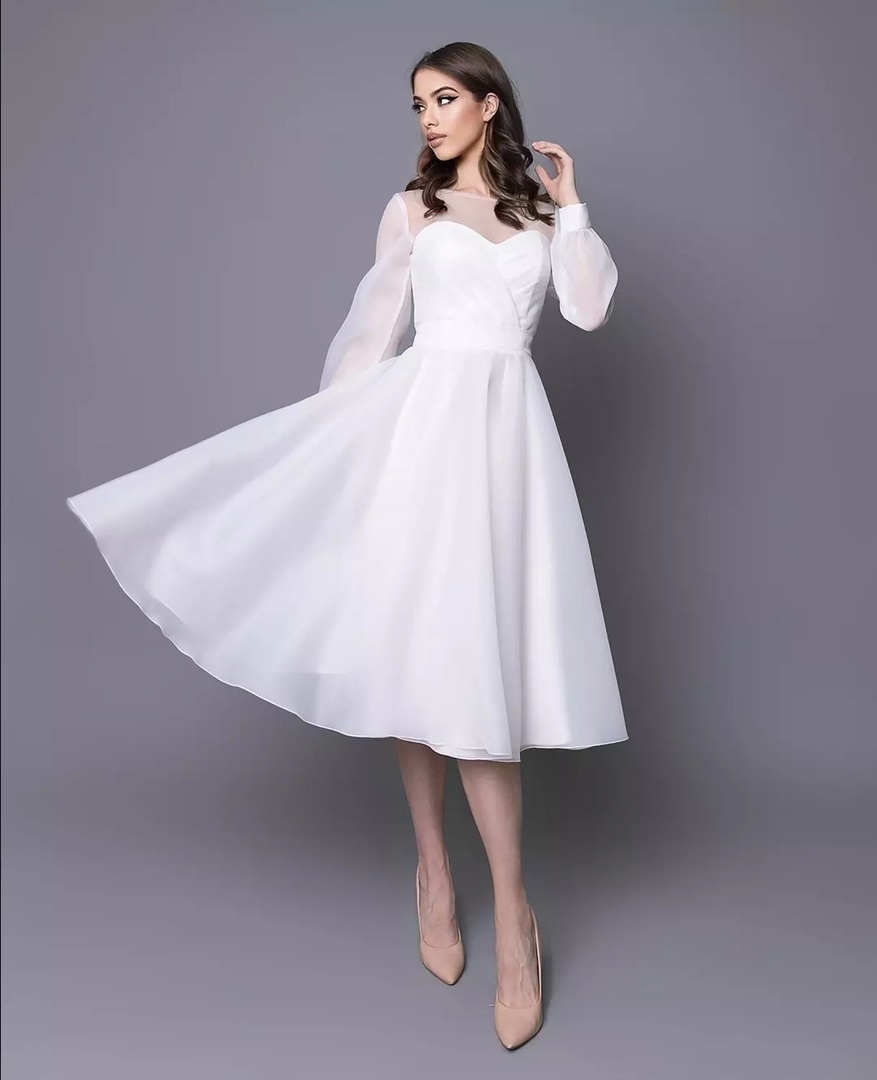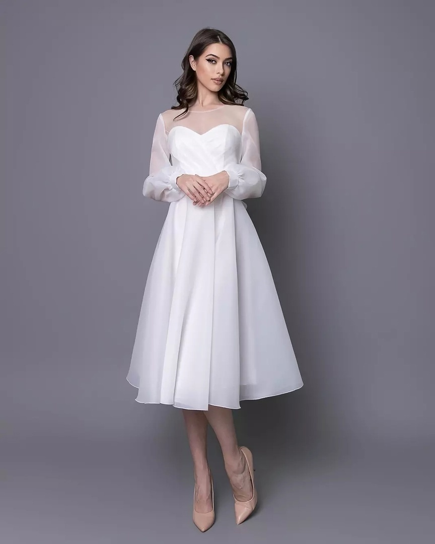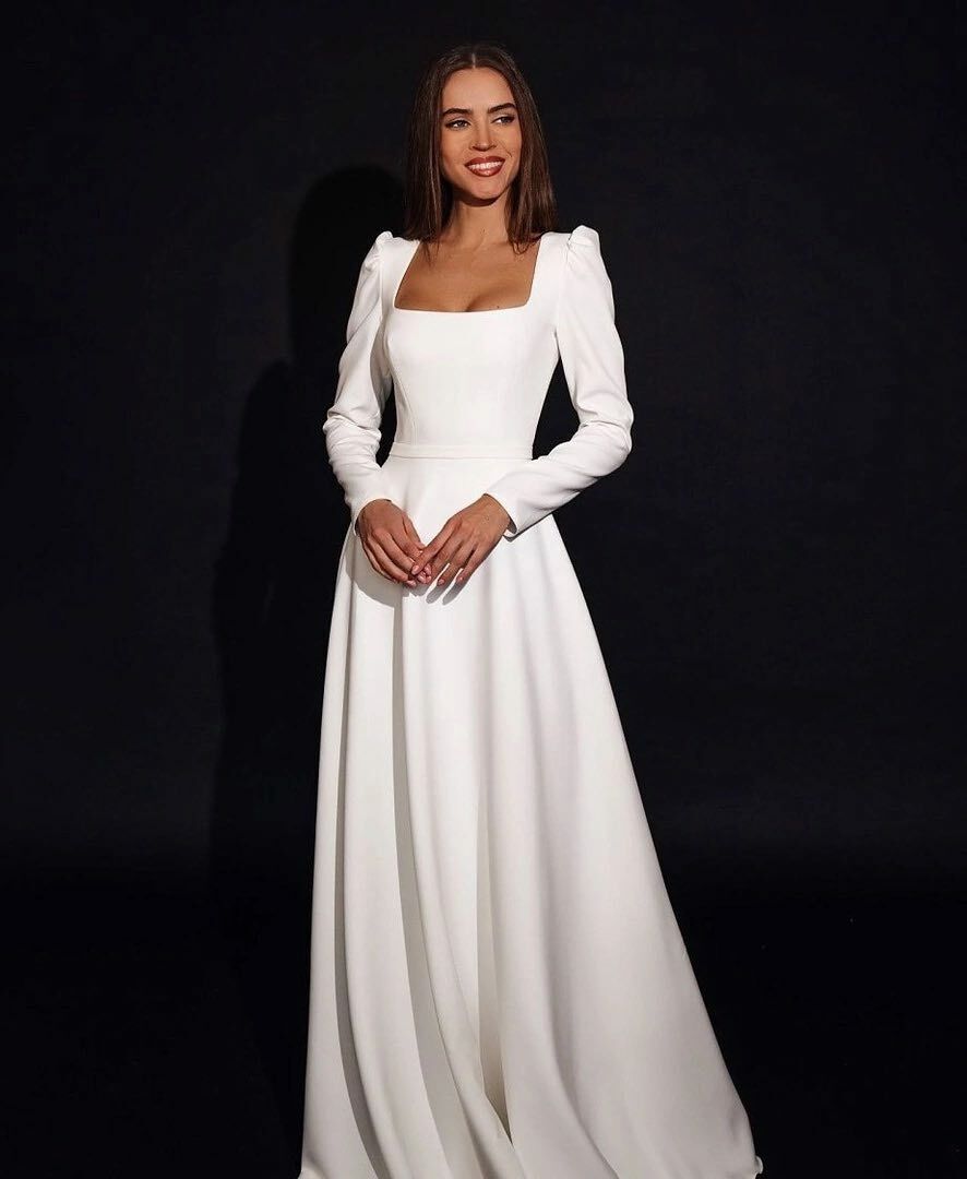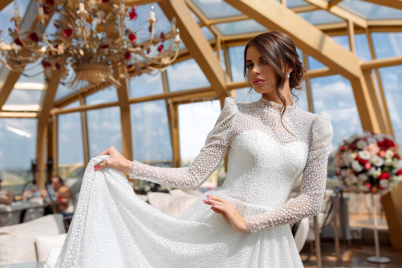 С одной стороны, никаких вырезов и декольте. Всё более чем прилично! Даже ваша бабушка на свадьбе оценит ваш выбор.