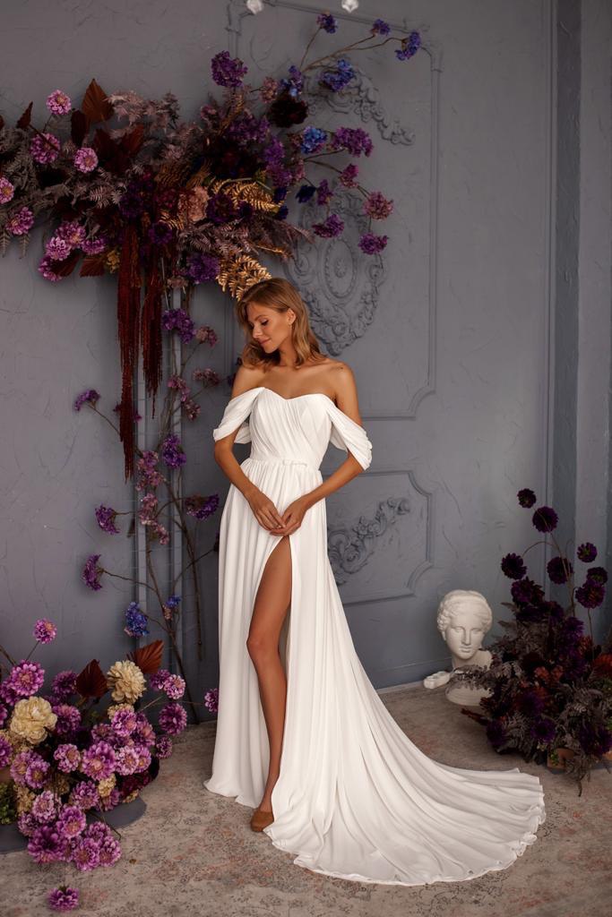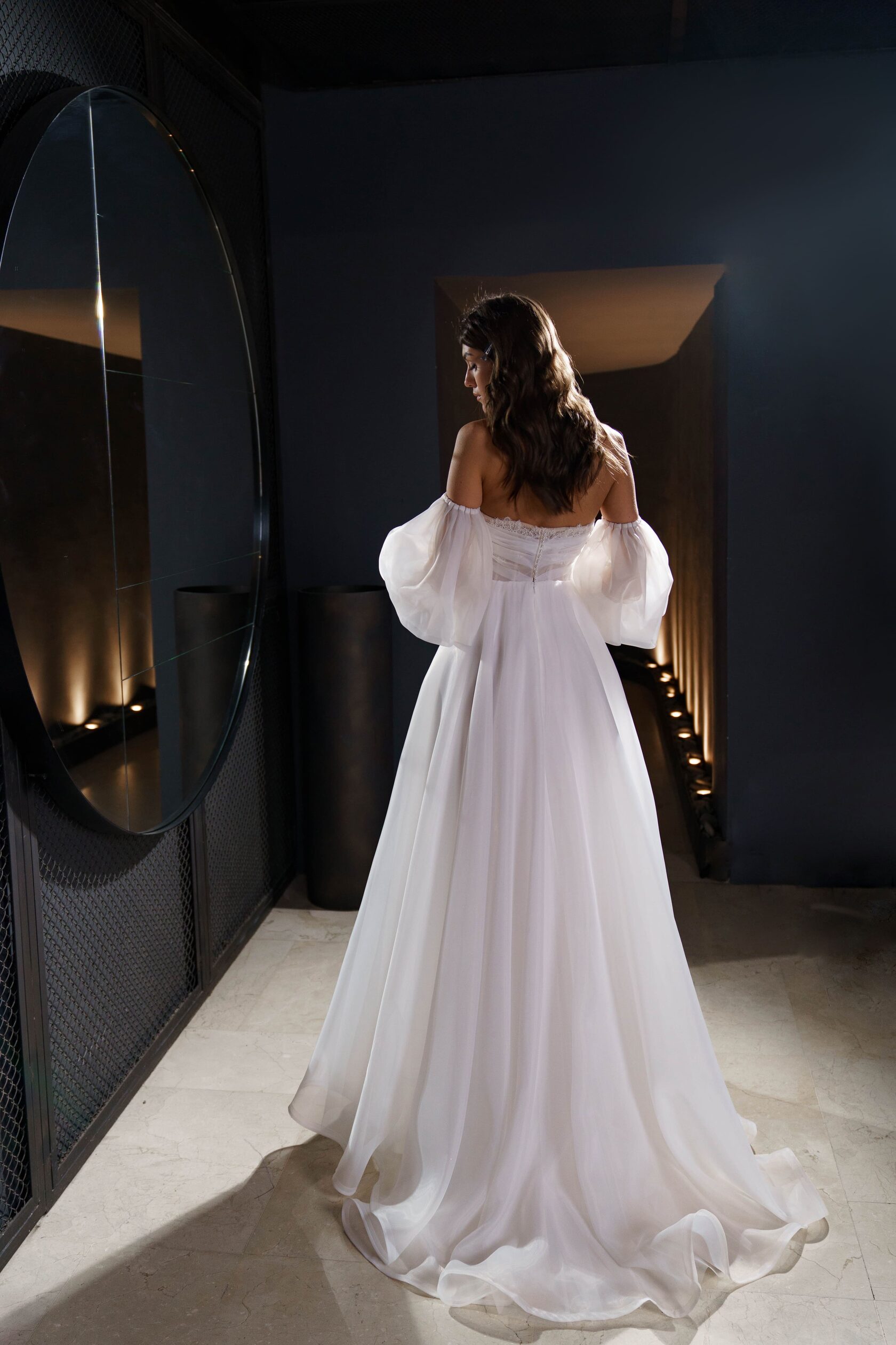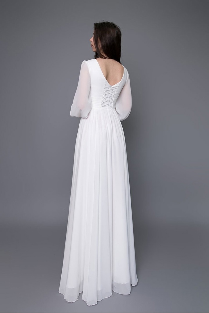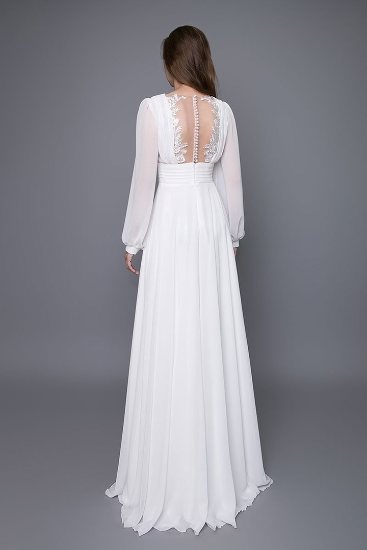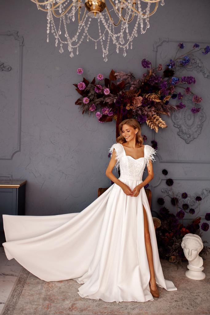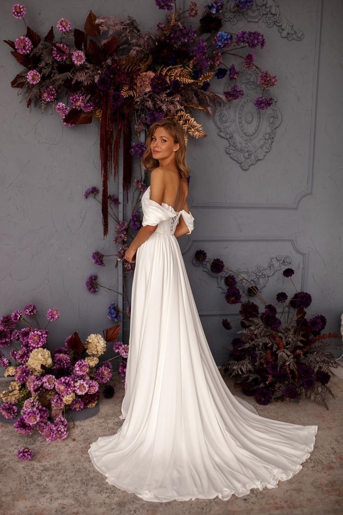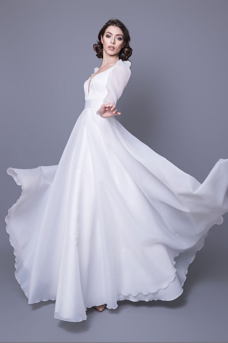 Безумно легкое и комфортное платье, выполнено из струящегося шифона, безусловно подчеркнёт утончённость каждой невесты!