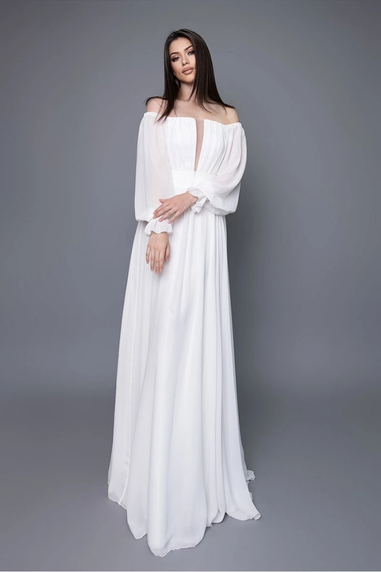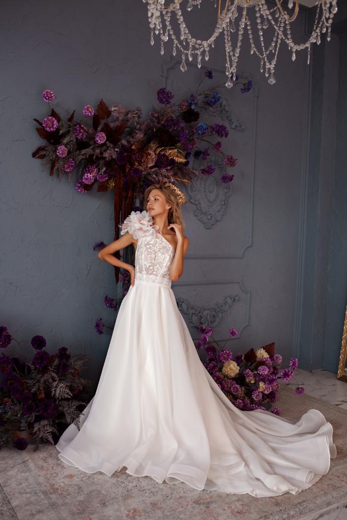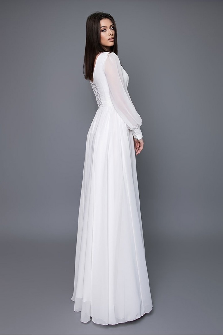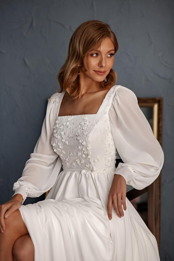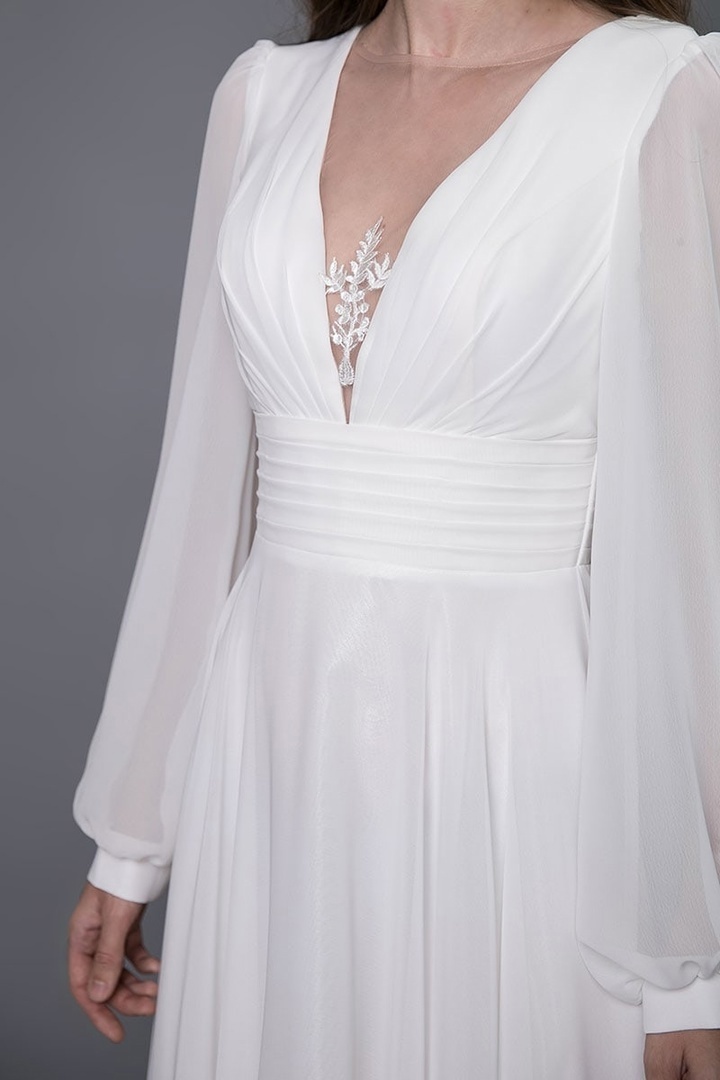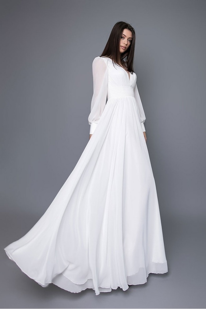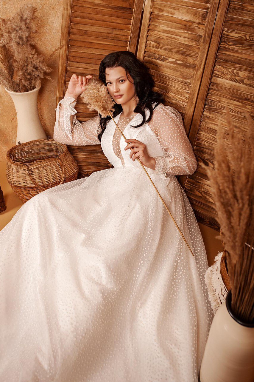 Безумно легкое и комфортное платье, выполнено из струящегося шифона, безусловно подчеркнёт утончённость каждой невесты!