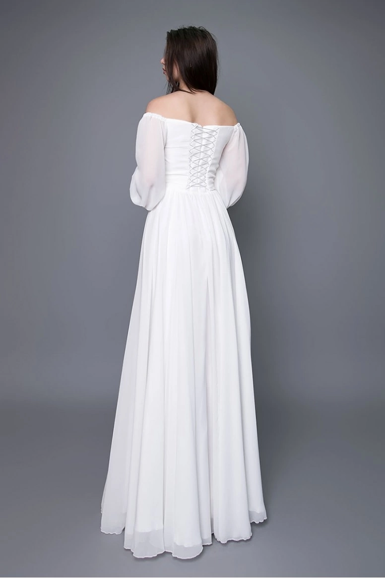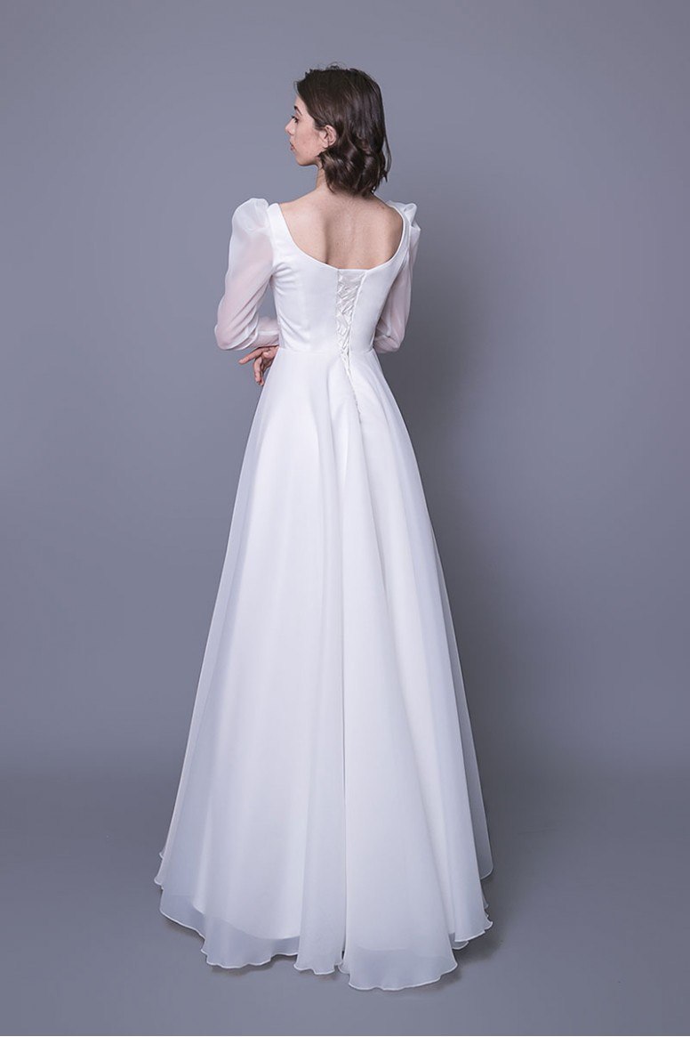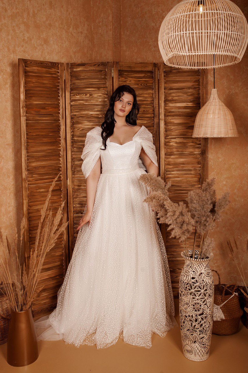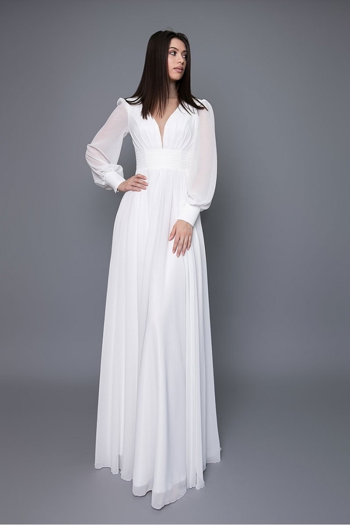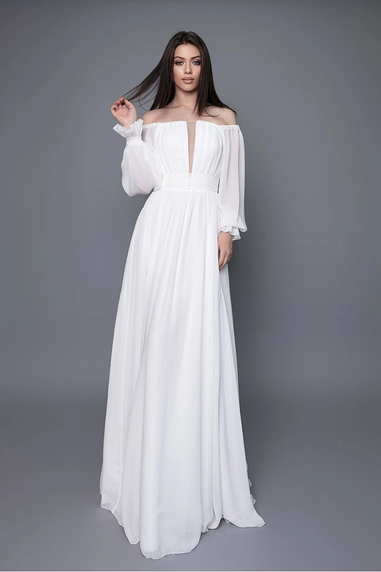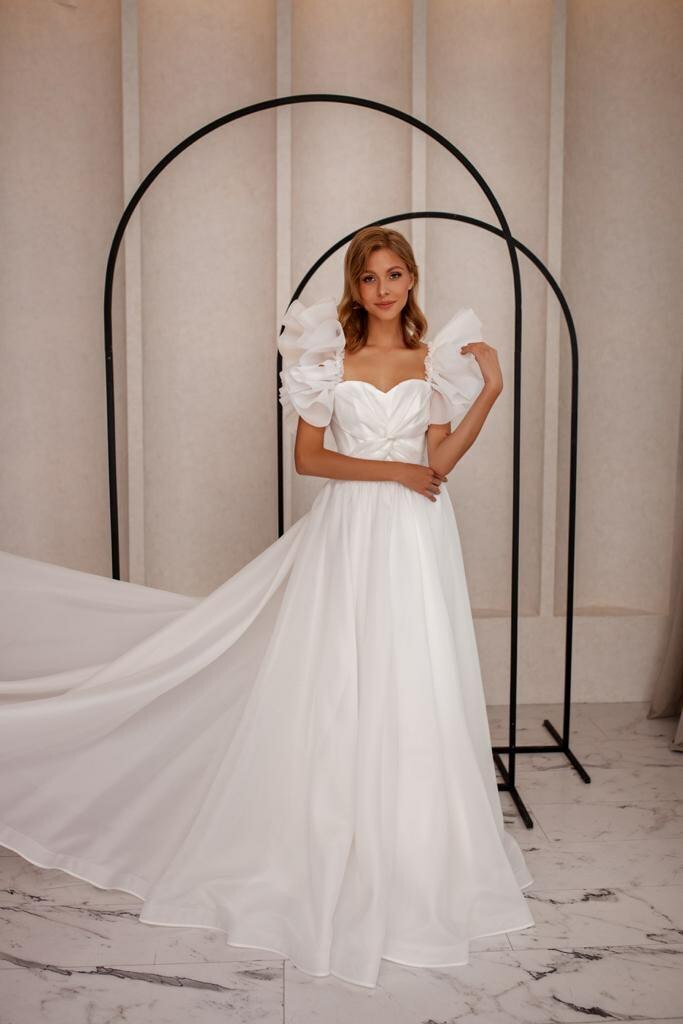 Безумно легкое и комфортное платье, выполнено из струящегося шифона, безусловно подчеркнёт утончённость каждой невесты!