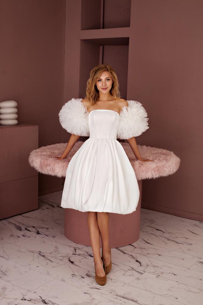 Юбка легко отстёгивается и остаётся эффектное короткое платье, с пышными рукавами .