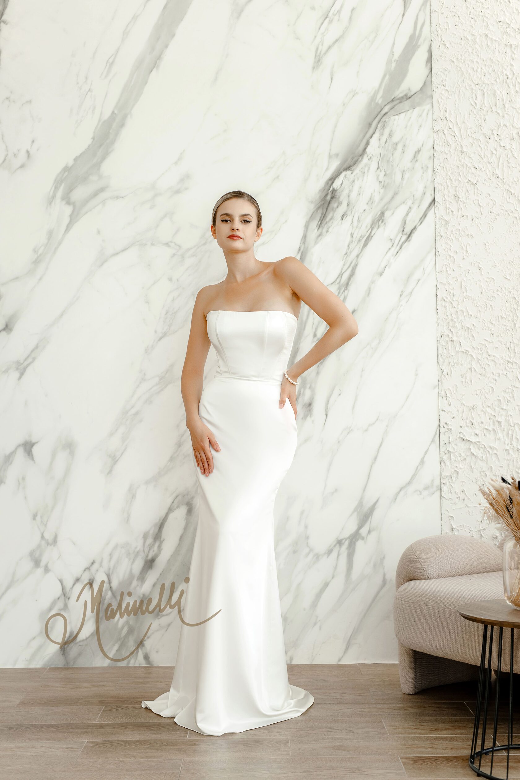 Минимализм - ещё одно направление в свадебной моде, стремительно набирающее популярность в последние два года. Утончённое платье - русалка, для любительниц лаконичных образов.